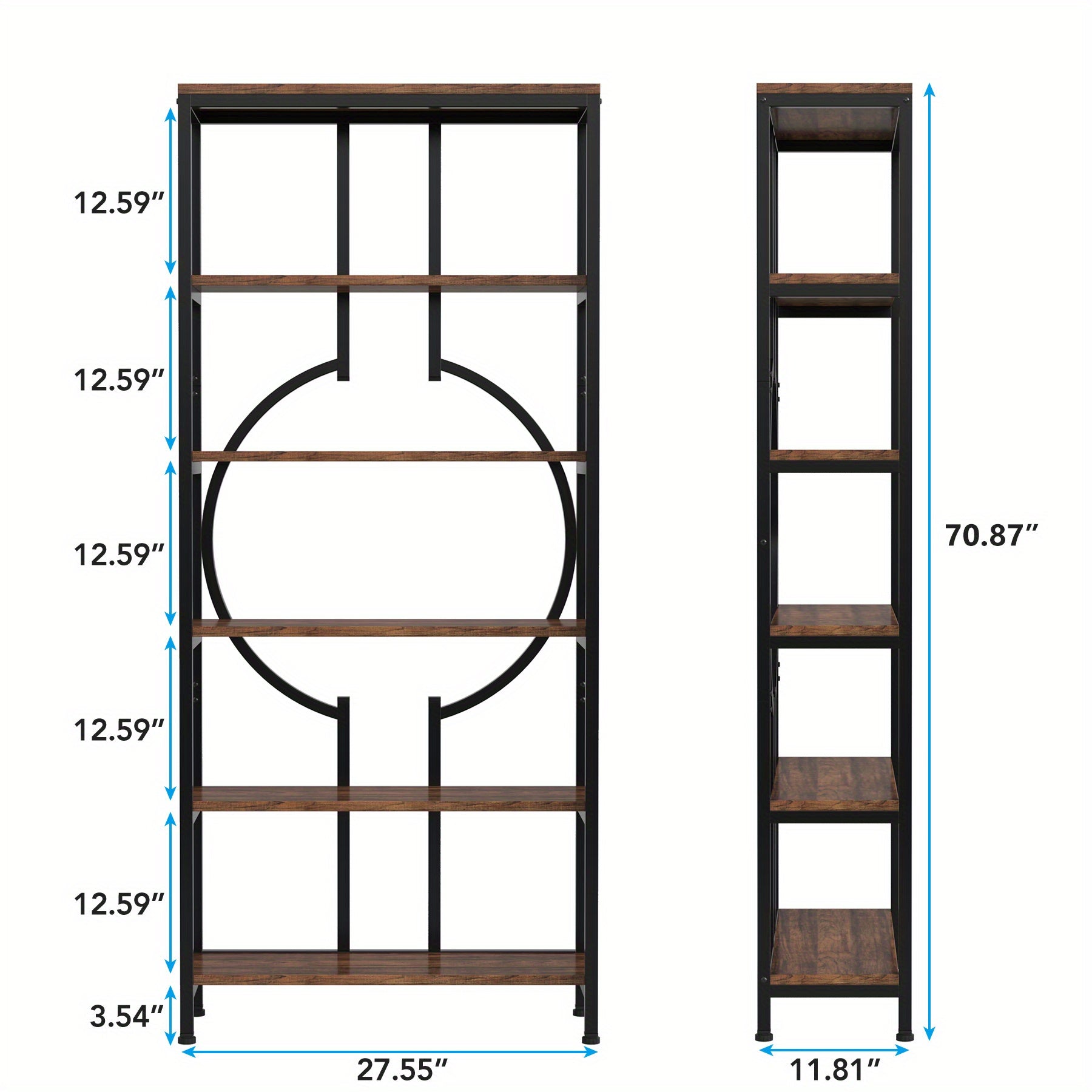 Durable Design – Crafted from E1-grade MDF wood with a sturdy black metal frame; each 0.59" thick shelf supports up to 60 lbs.