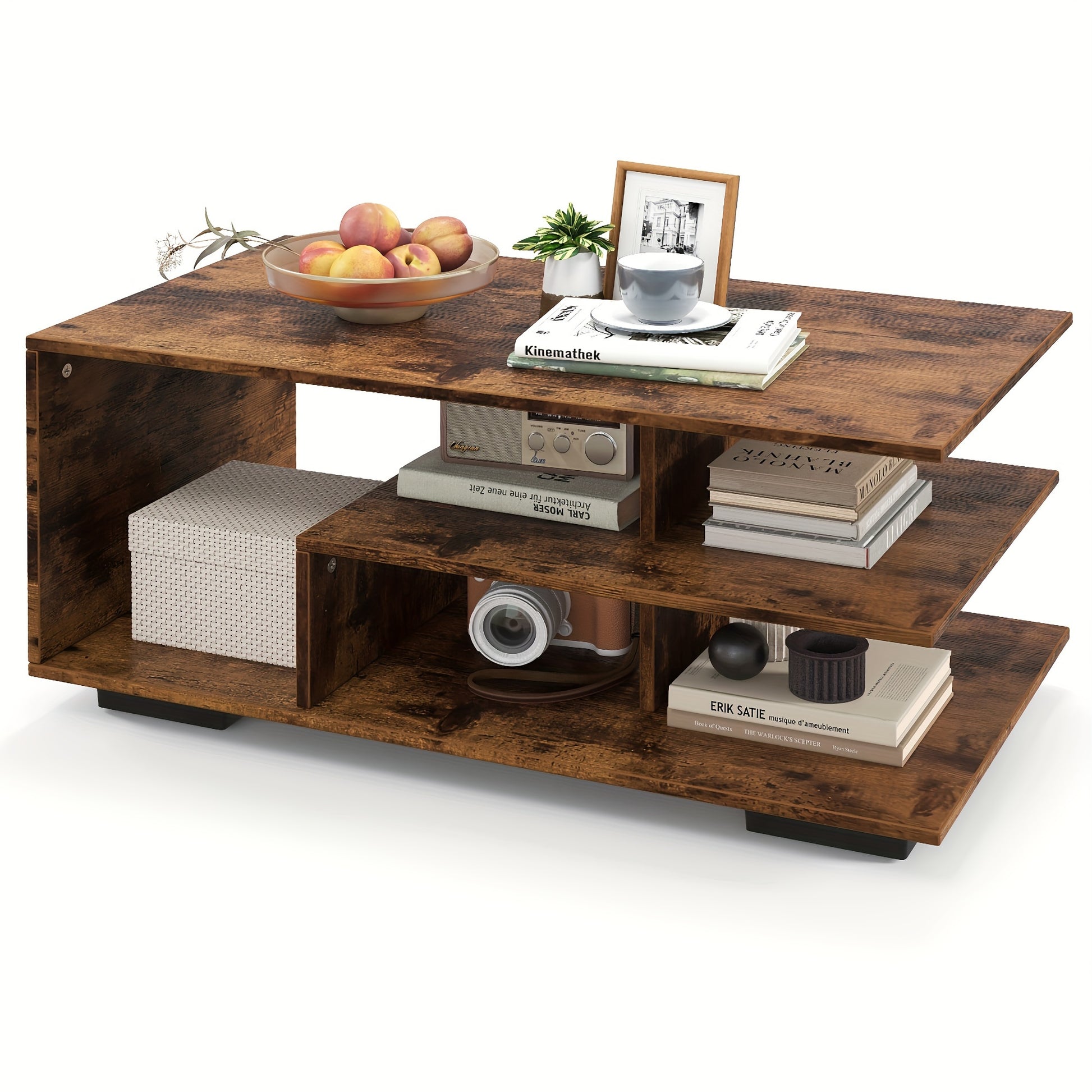 Geometric Coffee Table with Storage Shelves