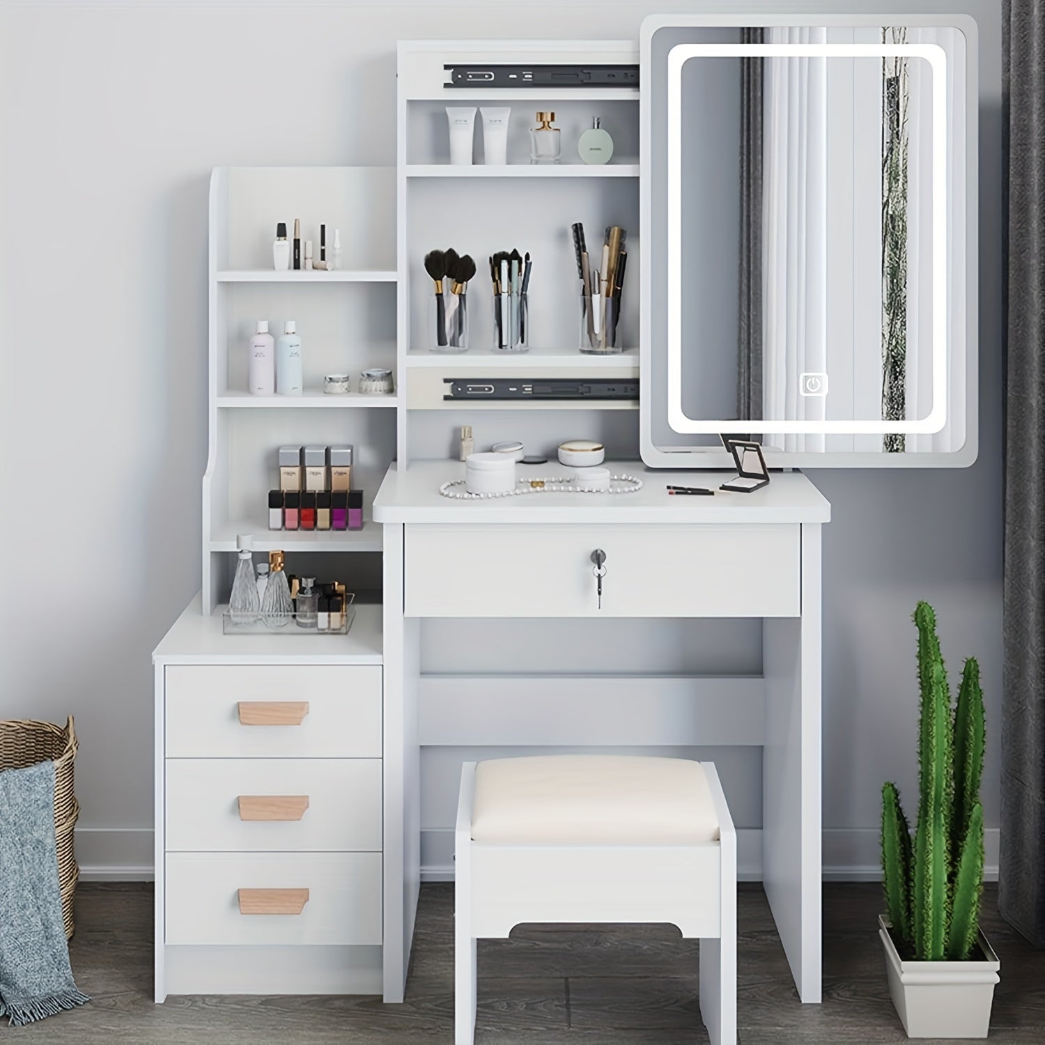 Upgrade your daily routine with this sleek, multifunctional LED Dressing Table, combining smart lighting, practical storage, and stylish design in one elegant unit. Perfect for bedrooms, dorms, or beauty corners, this vanity is designed for beauty enthusiasts and organized living.