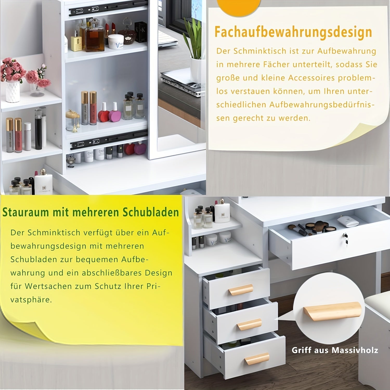 Comes with a mirror featuring 3 color lighting modes (cool, warm, and natural) with adjustable brightness β ideal for flawless makeup in any lighting.